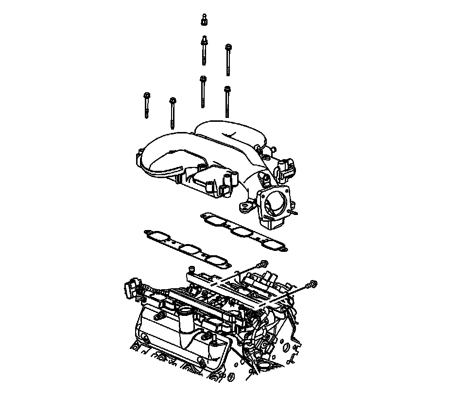 6. Apply threadlock GM P/N 12345382 (Canadian P/N 10953489) or equivalent, to the upper intake manifold bolts/stud threads.