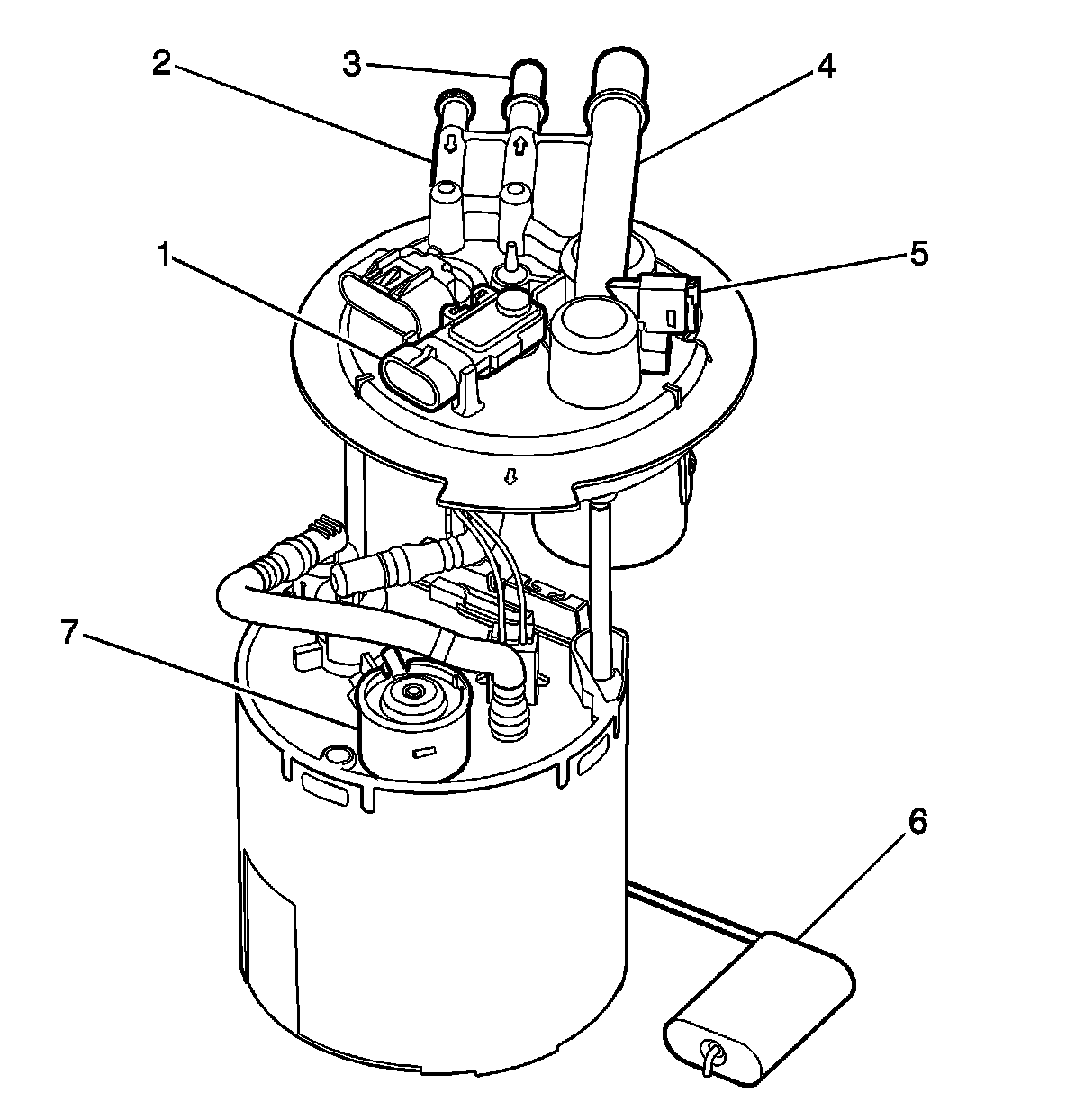 The fuel level sensor consists of a float, a wire float arm, and a ceramic resistor card. The position of the float arm indicates the fuel level. The fuel level sensor contains a variable resistor which changes resistance in correspondence with the amount of fuel in the fuel tank. The powertrain control module (PCM) sends the fuel level information via the class 2 circuit to the instrument panel cluster (IPC). This information is used for the instrument panel (I/P) fuel gage and the low fuel warning indicator, if applicable. The PCM also monitors the fuel level input for various diagnostics.