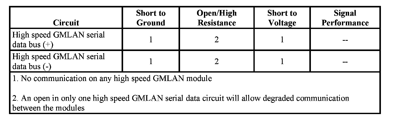 - A module internal malfunction that causes a short to voltage or ground on the high speed GMLAN circuits