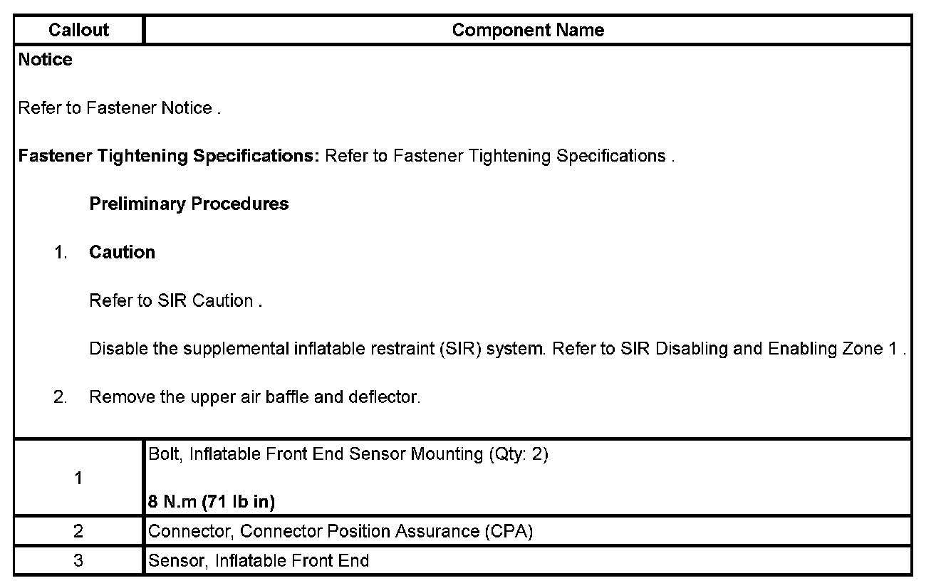 INFLATABLE RESTRAINT FRONT END SENSOR REPLACEMENT