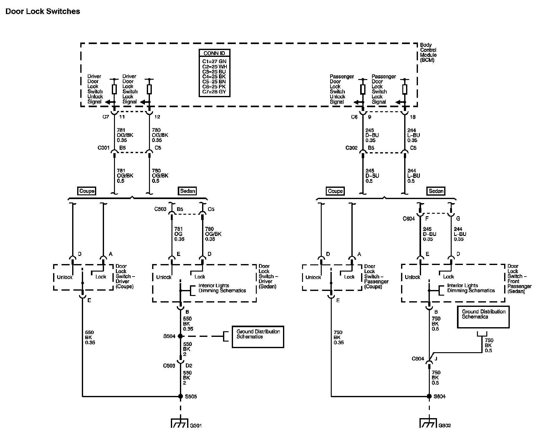 Locations: The locations for the Connectors, Grounds, Splices, and Grommets shown within these diagrams can be found via their numbers at Vehicle Locations. Locations