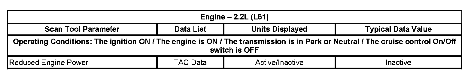 The typical data values are obtained from a properly operating vehicle under the conditions specified in the first row of the scan tool data list table. Comparison of the parameter values from the suspect vehicle with the typical data values may reveal the source of the customer concern.