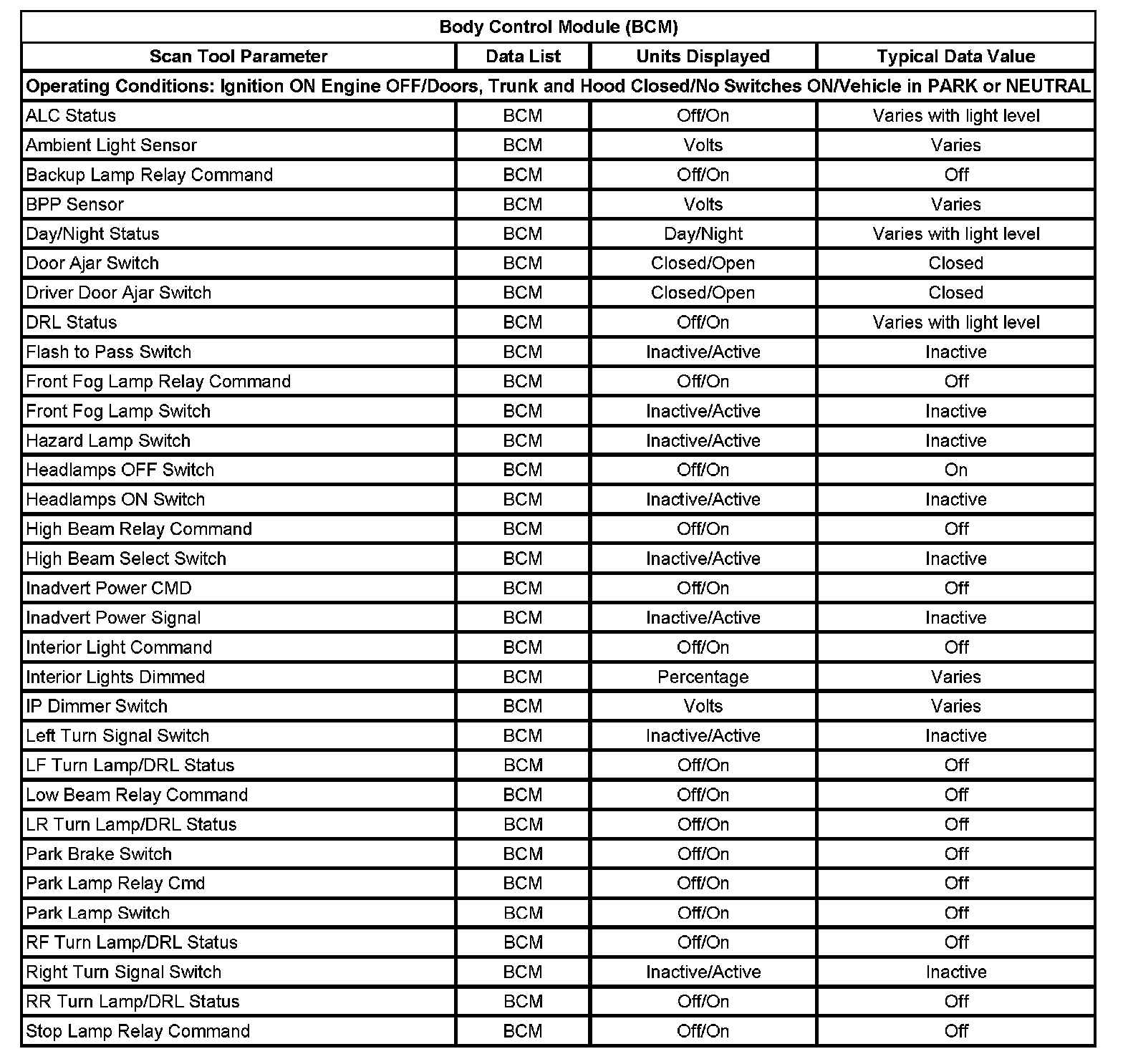 Body Control Module (BCM):