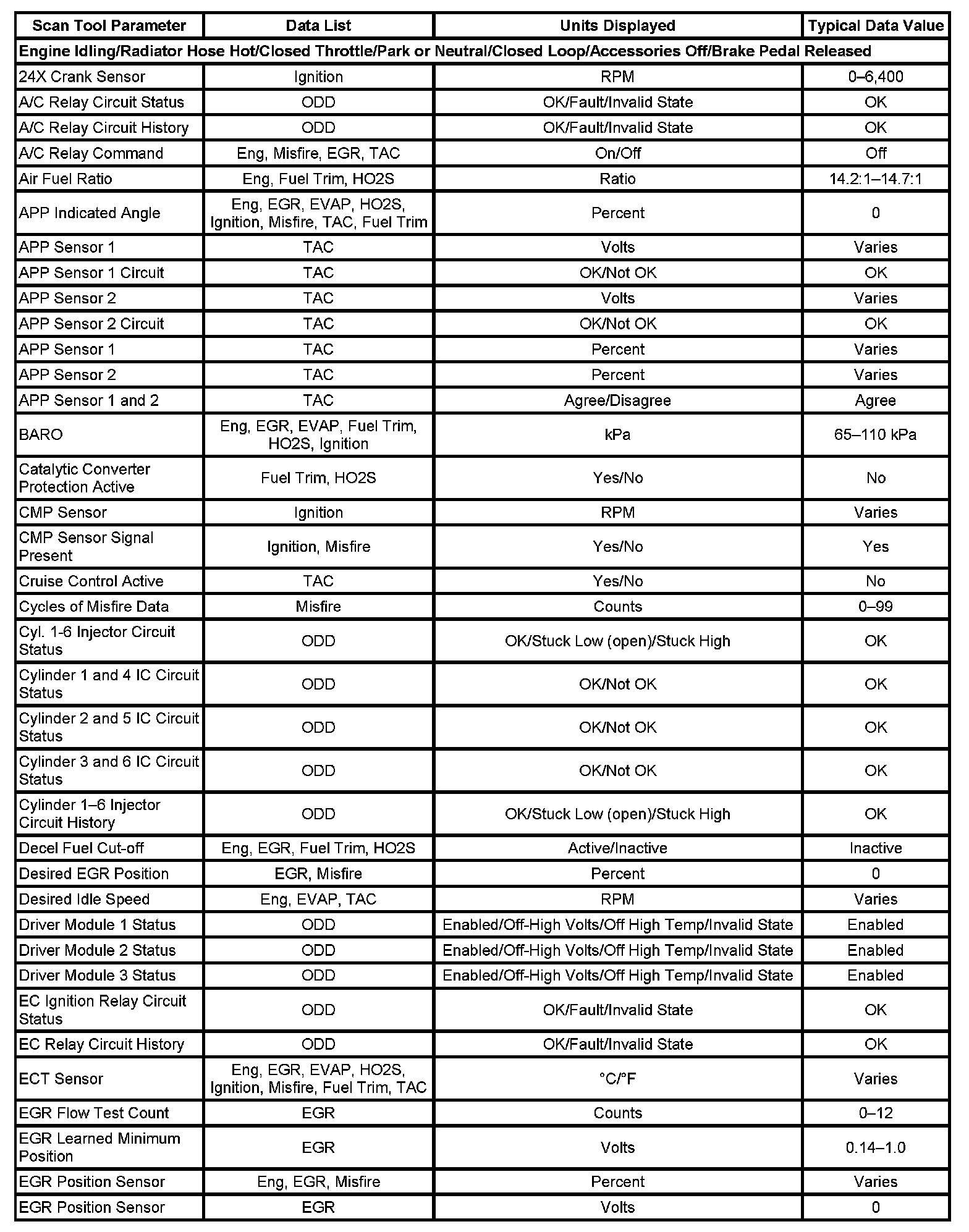 Only the parameters listed below are referenced in this service data for use in diagnosis. If all values are within the typical range described below, refer to Symptoms - Computers and Control Systems for diagnosis. - Symptoms - Engine Controls