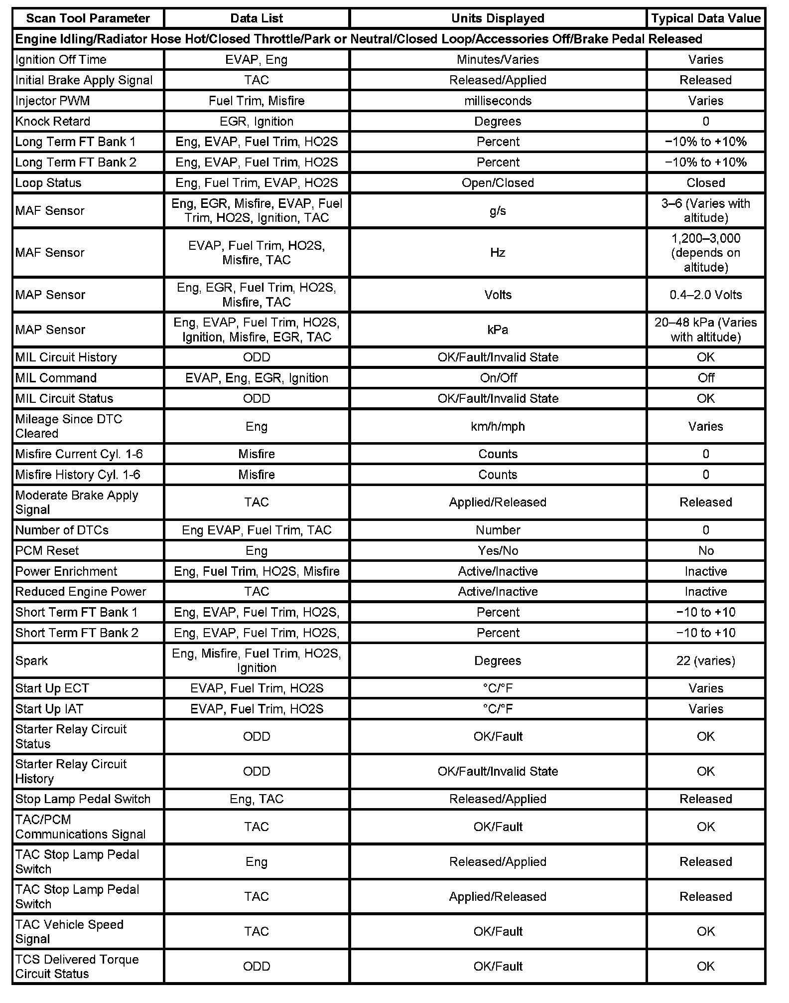 The column labeled Data List indicates where a parameter can be located on the scan tool. Refer to the scan tool operating manual for the exact locations of the data lists. The following is a description of each term listed:
