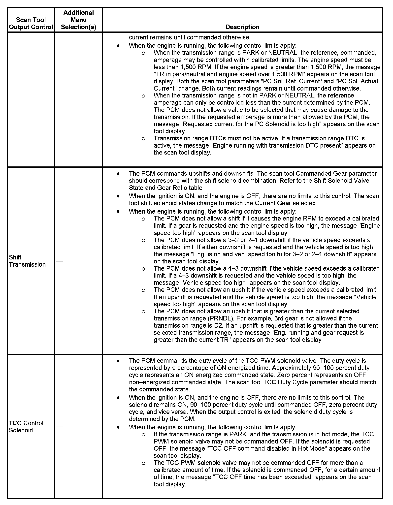 Scan Tool Output Controls: