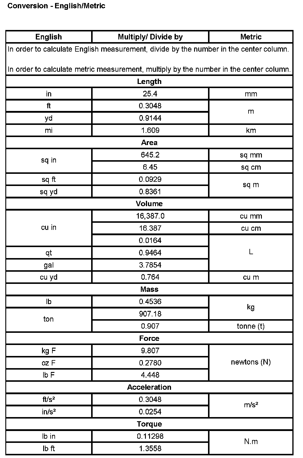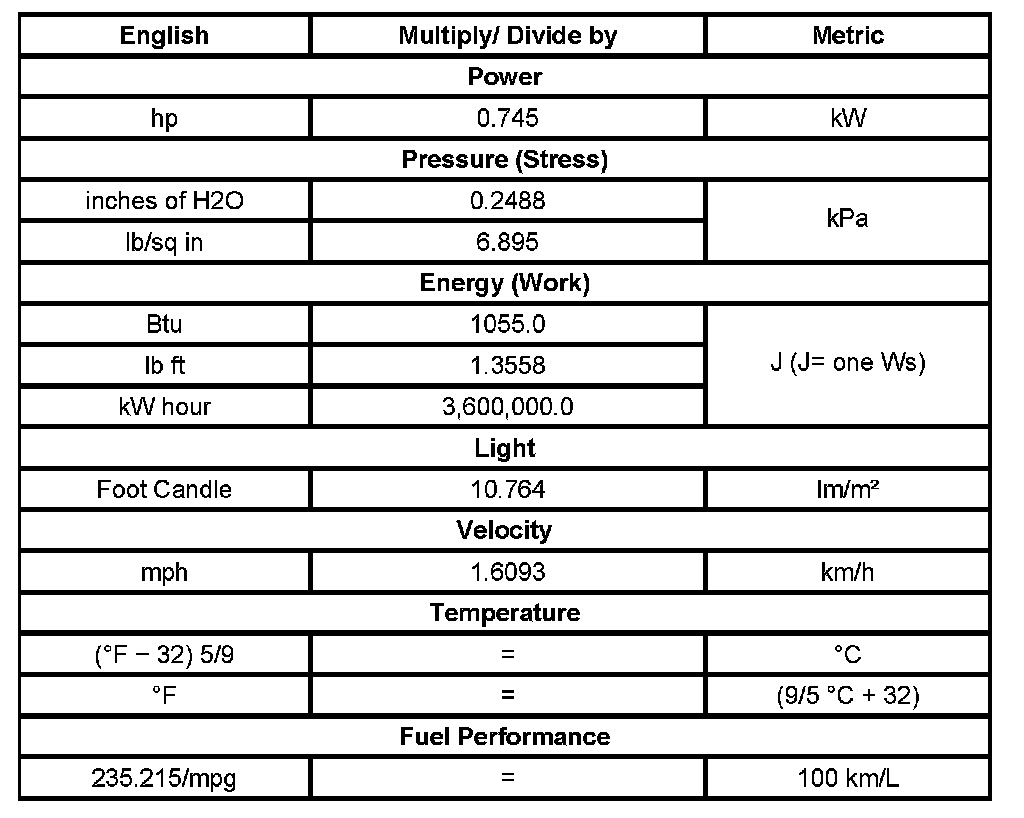 Conversion - English/Metric