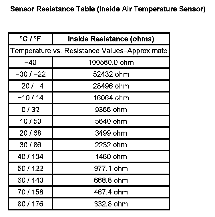 Sensor Resistance Table (Inside Air Temperature Sensor)
