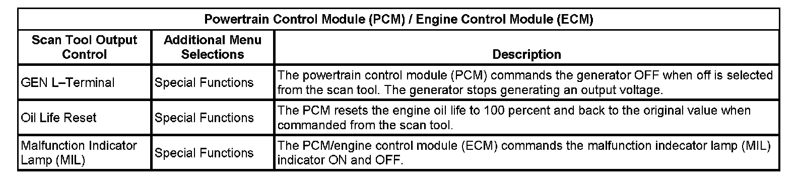 Scan Tool Output Controls