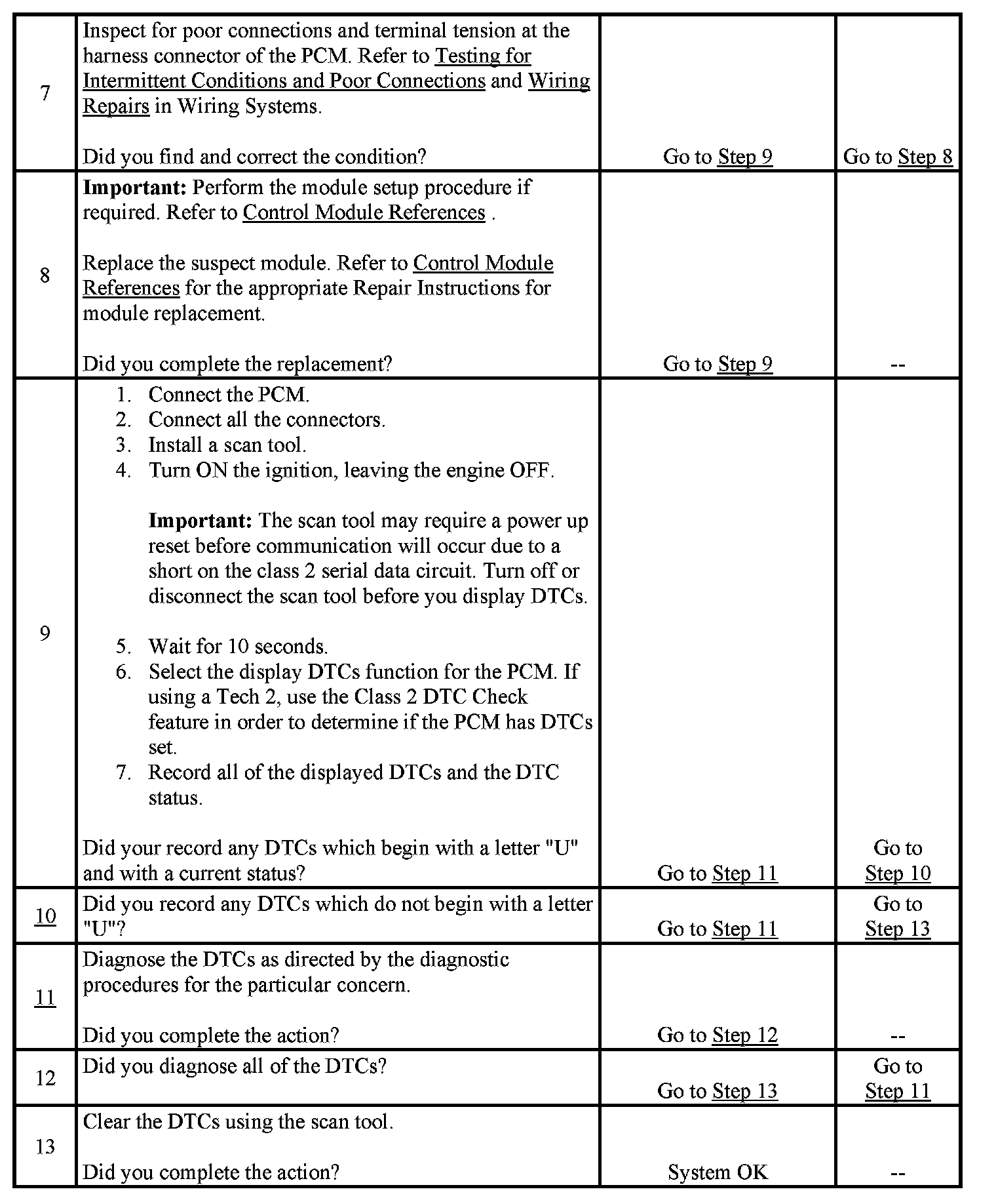 The powertrain control module (PCM) is connected to the class 2 serial data circuit. The class 2 serial data circuit is used for diagnostic purposes only in this vehicle. Connecting a scan tool to the data link connector (DLC) allows communication with the PCM for diagnostic purposes. DTCs may be set due to this symptom and during this diagnostic procedure. Complete the diagnostic procedure in order to ensure all the DTCs are diagnosed and cleared from memory.