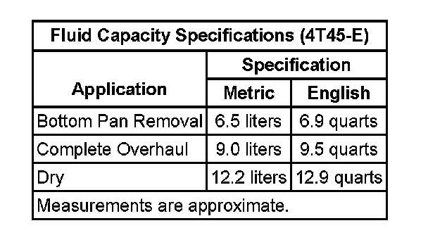 Fluid Capacity Specifications: