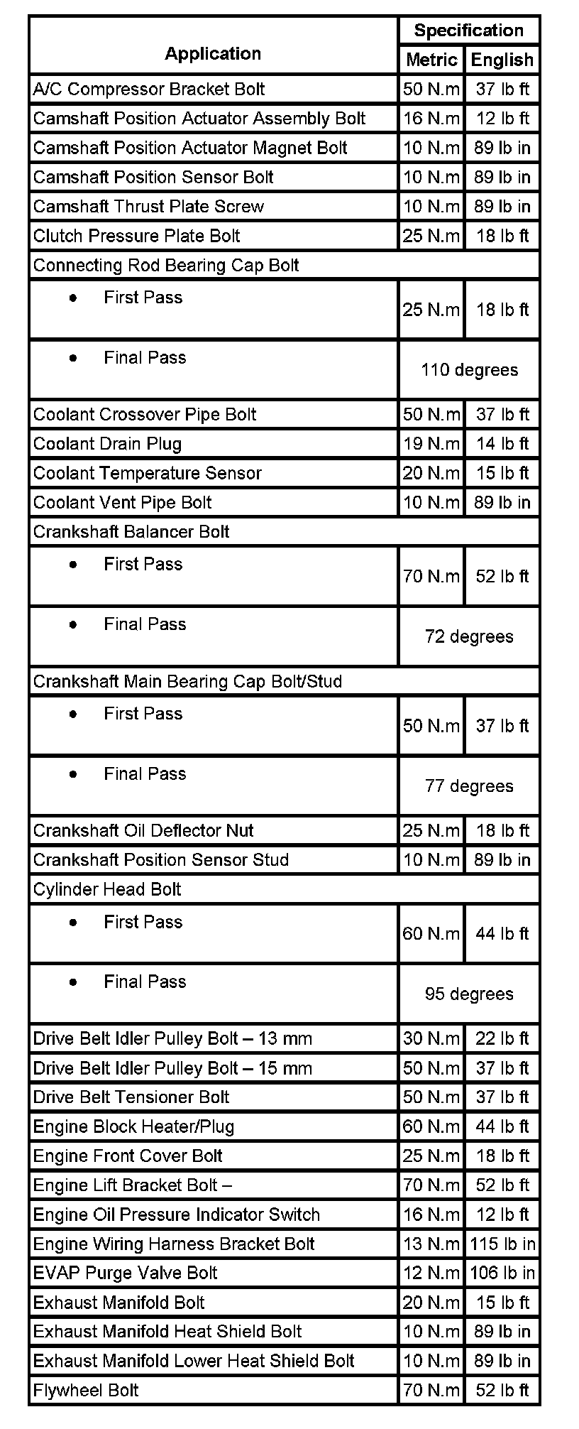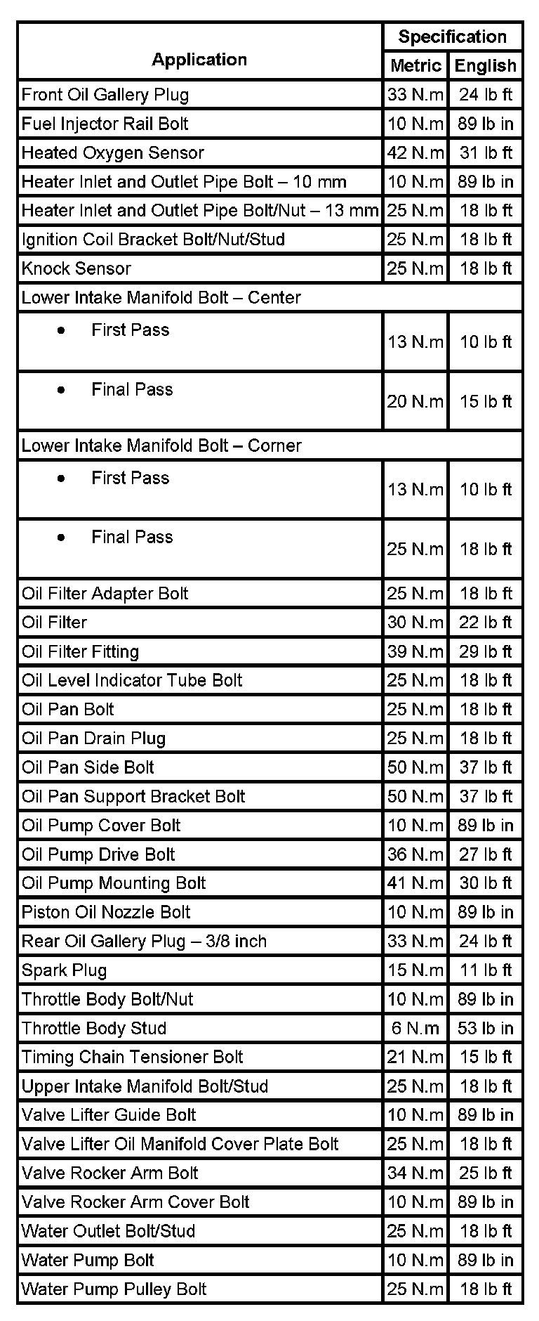 Fastener Tightening Specifications: