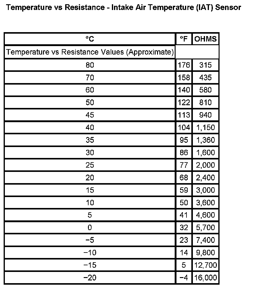 Temperature vs Resistance - Intake Air Temperature (IAT) Sensor: