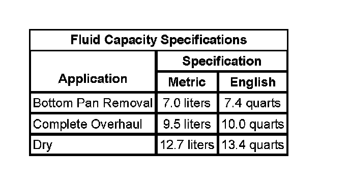 Fluid Capacity Specifications: