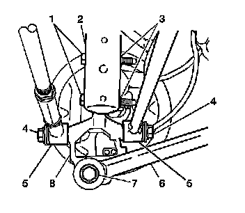 5. Remove the spindle rod to knuckle bolt (4) and nut.