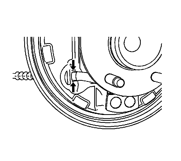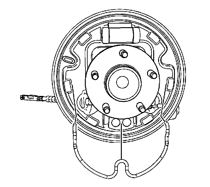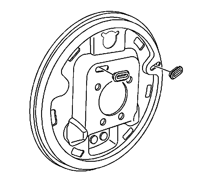 4. Install the park brake cable to the backing plate assembly by pushing the cable thorough the backing plate assembly until the locking tabs click into place.