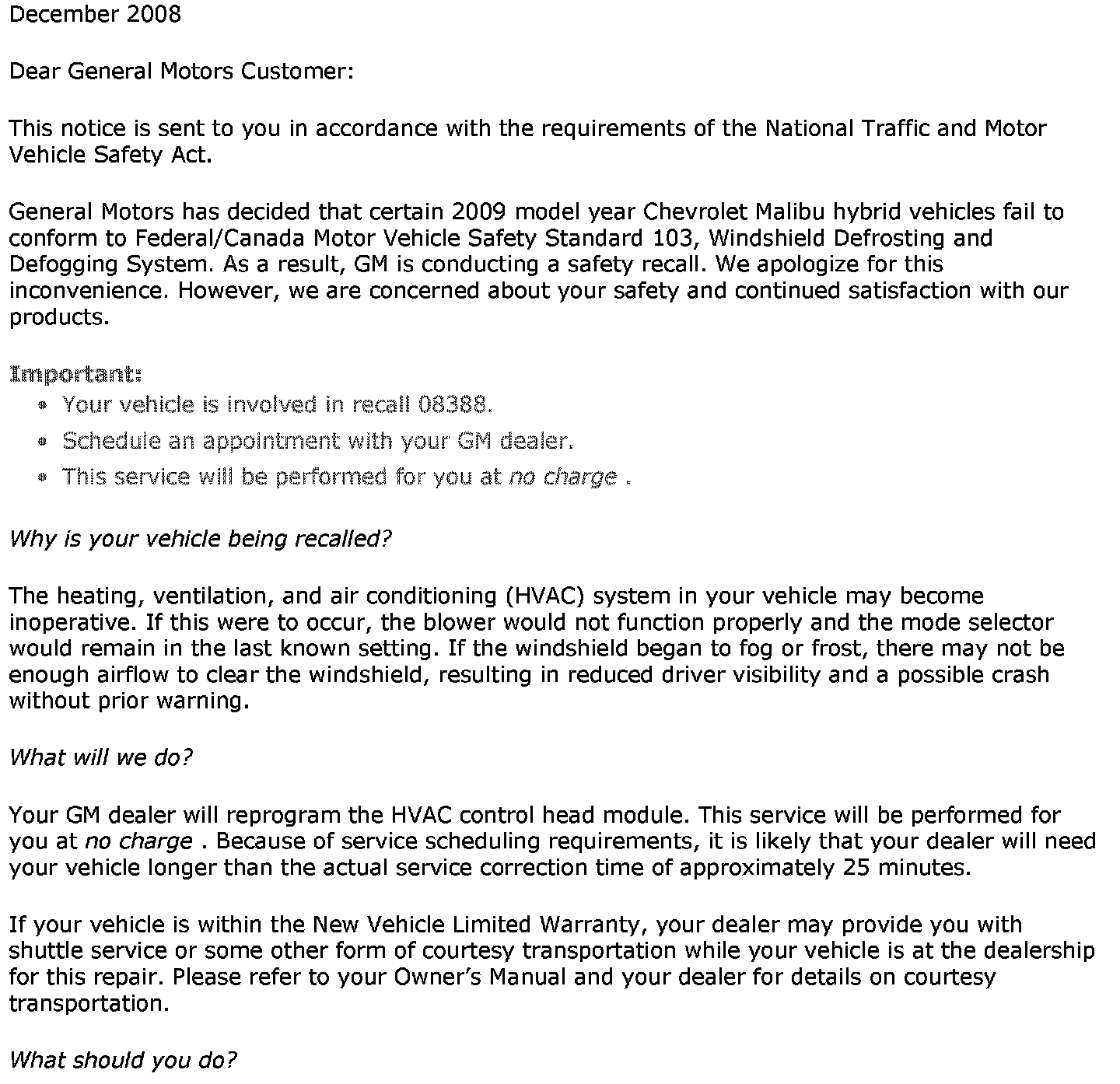 Recall - A/C Control Module Programming
