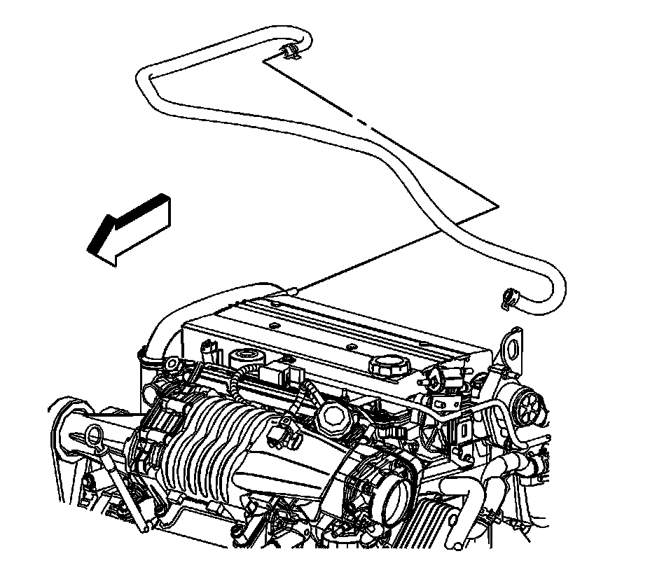 1. Disconnect the crankcase ventilation hose from the camshaft cover.