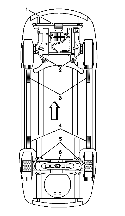 Danger: To avoid any vehicle damage, serious personal injury or death when major components are removed from the vehicle and the vehicle is supported by a hoist, support the vehicle with jack stands at the opposite end from which the components are being removed and strap the vehicle to the hoist.