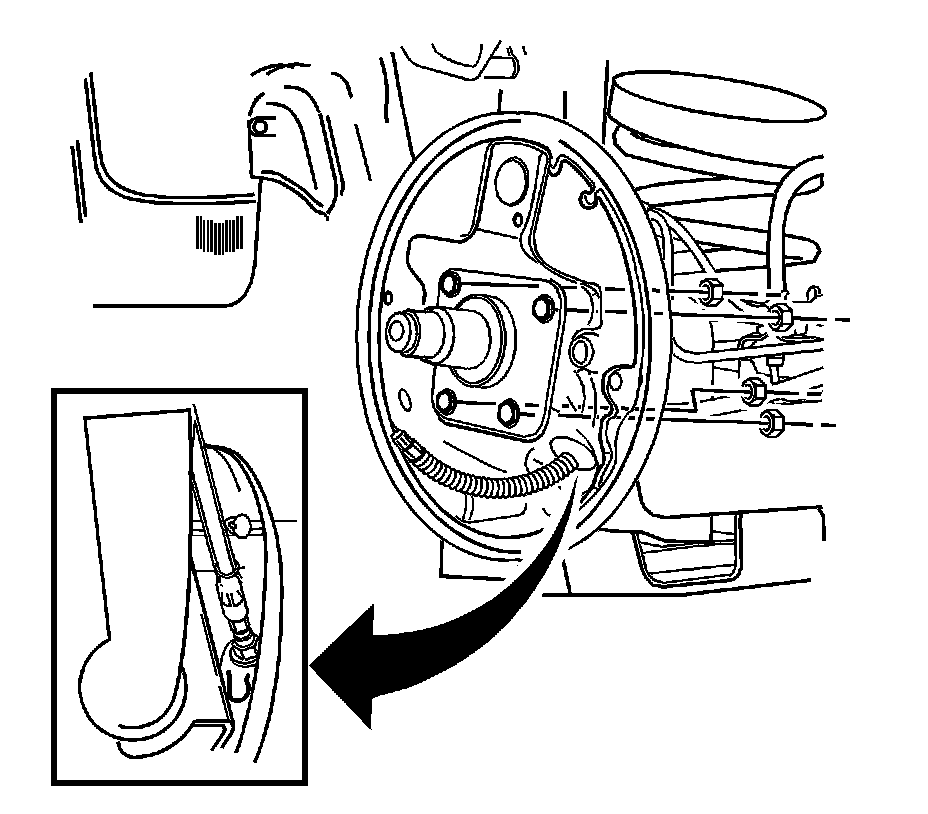 3. Install the brake wheel cylinder assembly to the backing plate. Refer to Rear Brake Cylinder Replacement (Rear Brake Cylinder Replacement).