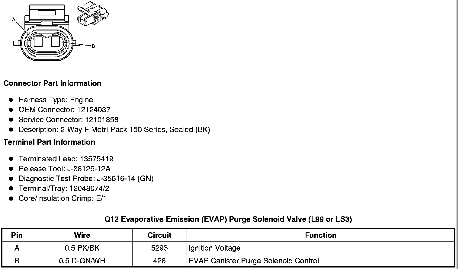 Q12 Evaporative Emission (EVAP) Purge Solenoid Valve (L99 or LS3)