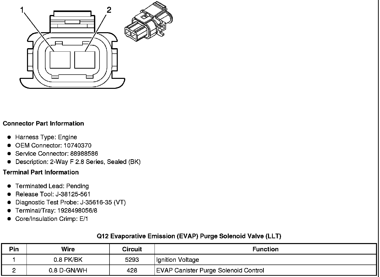Q12 Evaporative Emission (EVAP) Purge Solenoid Valve (LLT)