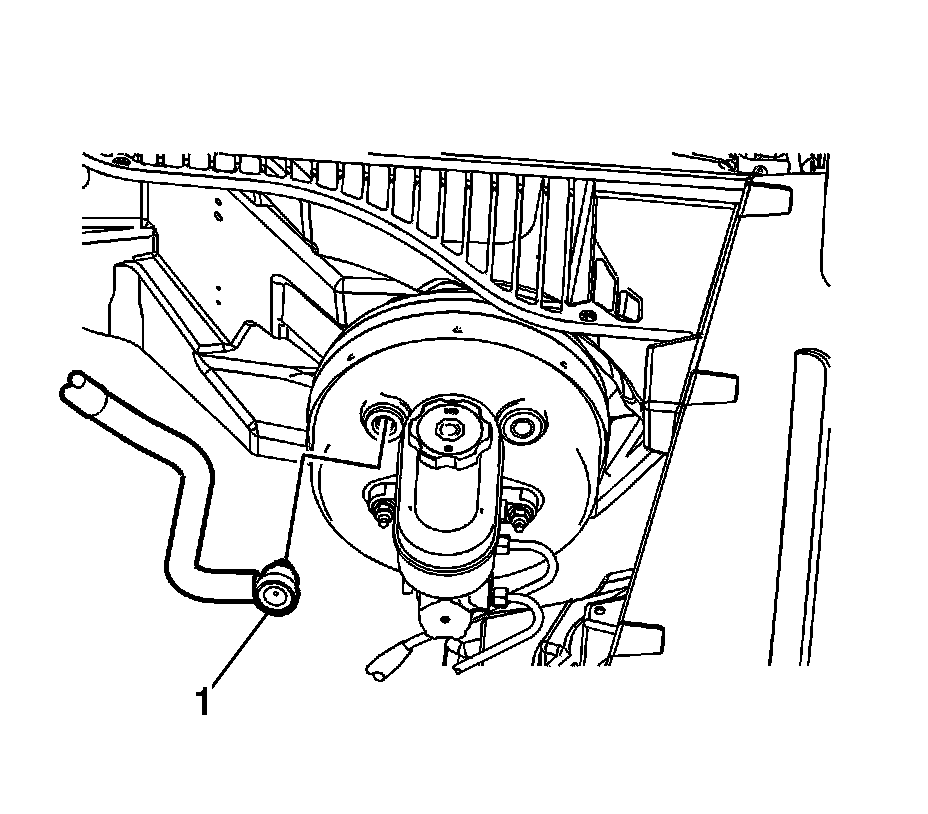 4. Disconnect the vacuum brake booster check valve and hose assembly (1) from the power vacuum brake booster.