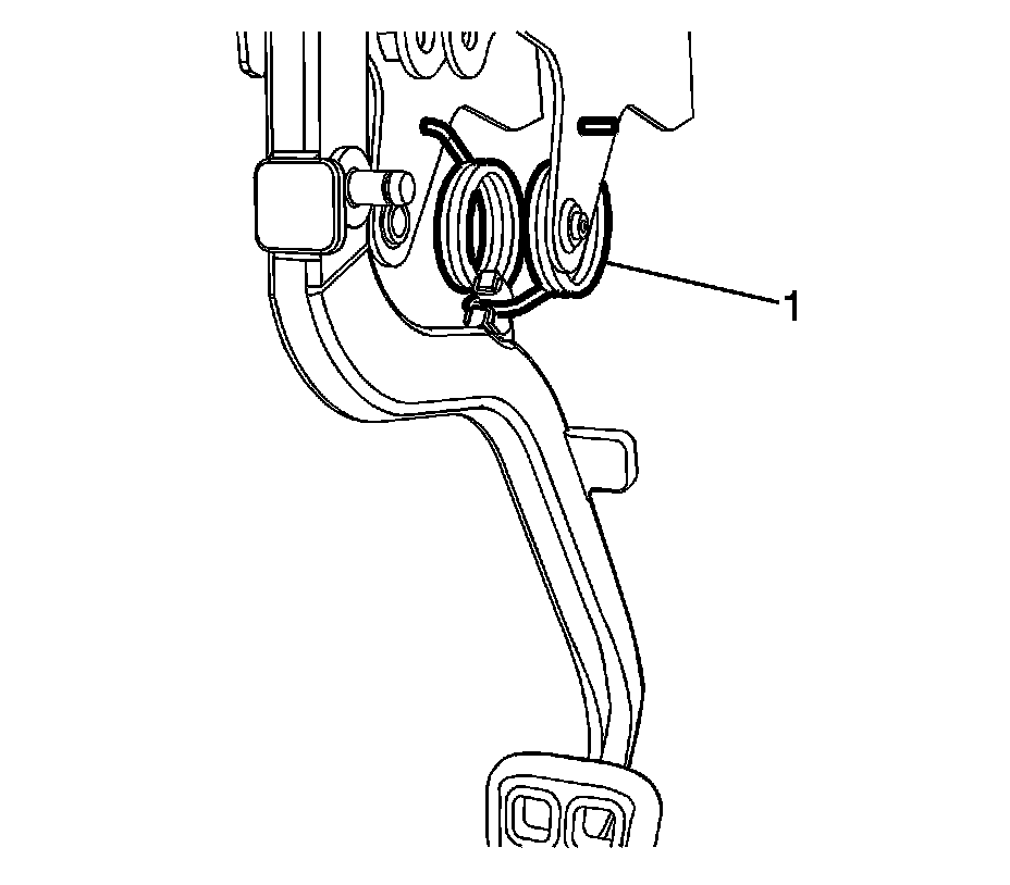 12. Install the clutch pedal assist spring (1) to the clutch pedal bracket (in the direction noted during removal).