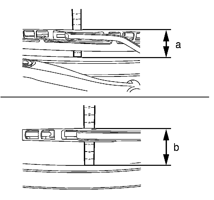 Upper edge of water deflector (rubber lip) to wiper arm attachment point.