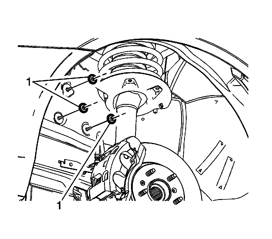 2. Remove the left front tire and wheel assembly. Refer to Tire and Wheel Removal and Installation Service and Repair.