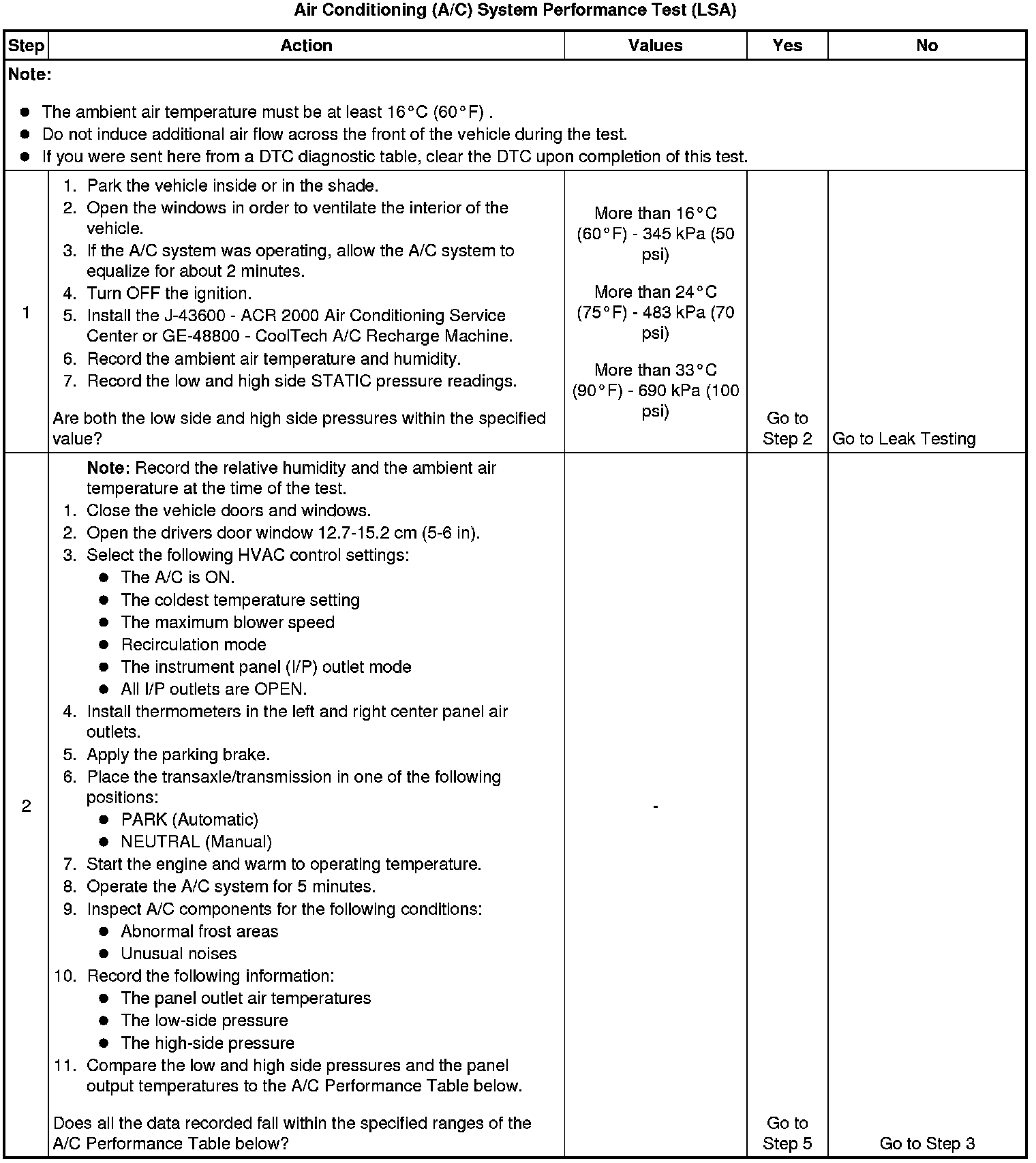 Air Conditioning (A/C) System Performance Test (LSA)