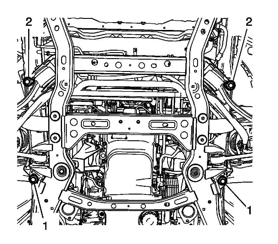 3. Install the front frame (2) mountings bolts and tighten to 160 Nm (118 lb ft).