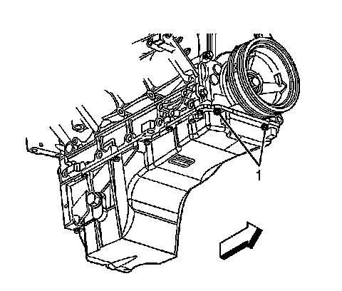 4. Remove the oil pan-to-front cover bolts (1).