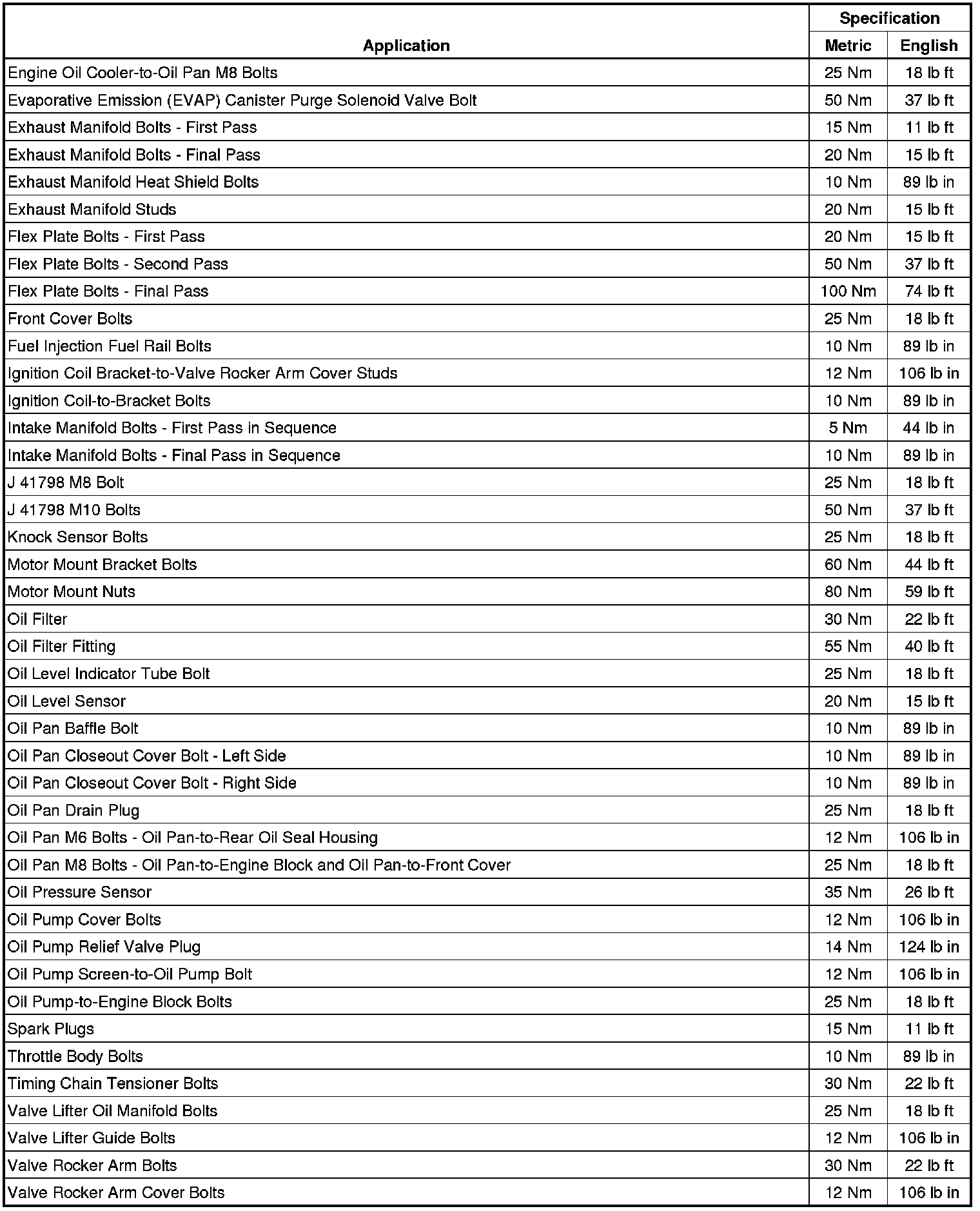Fastener Tightening Specifications