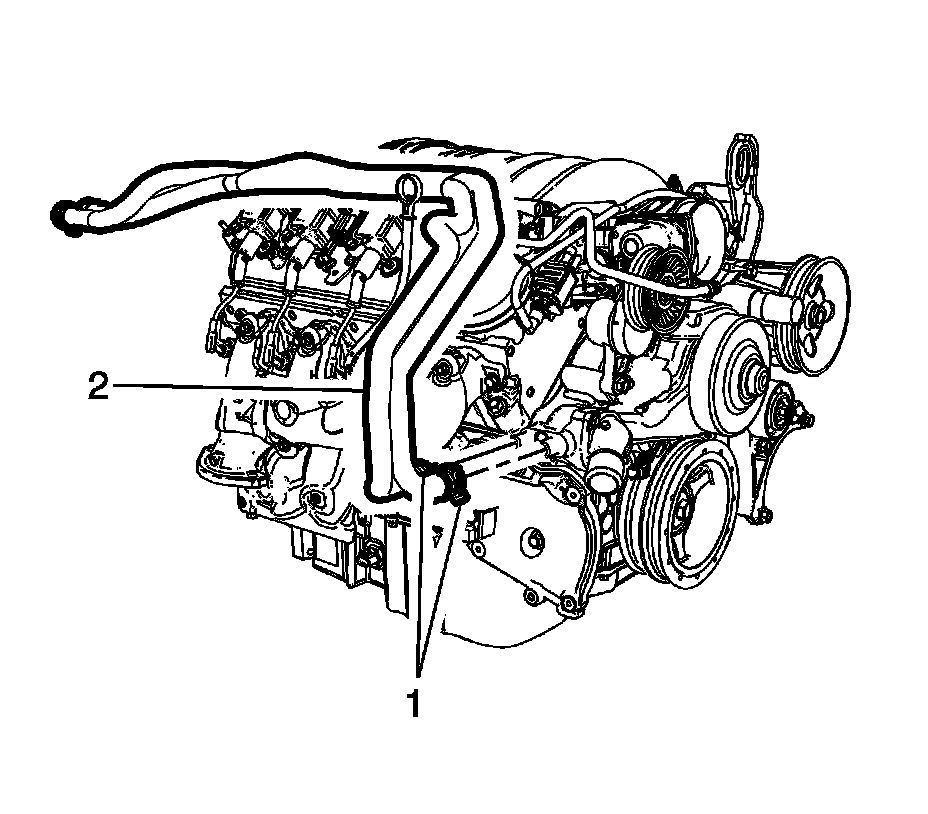 5. Disengage tension on the heater inlet and outlet hose clamps (1) at the engine using J 38185 - Hose Clamp Pliers.