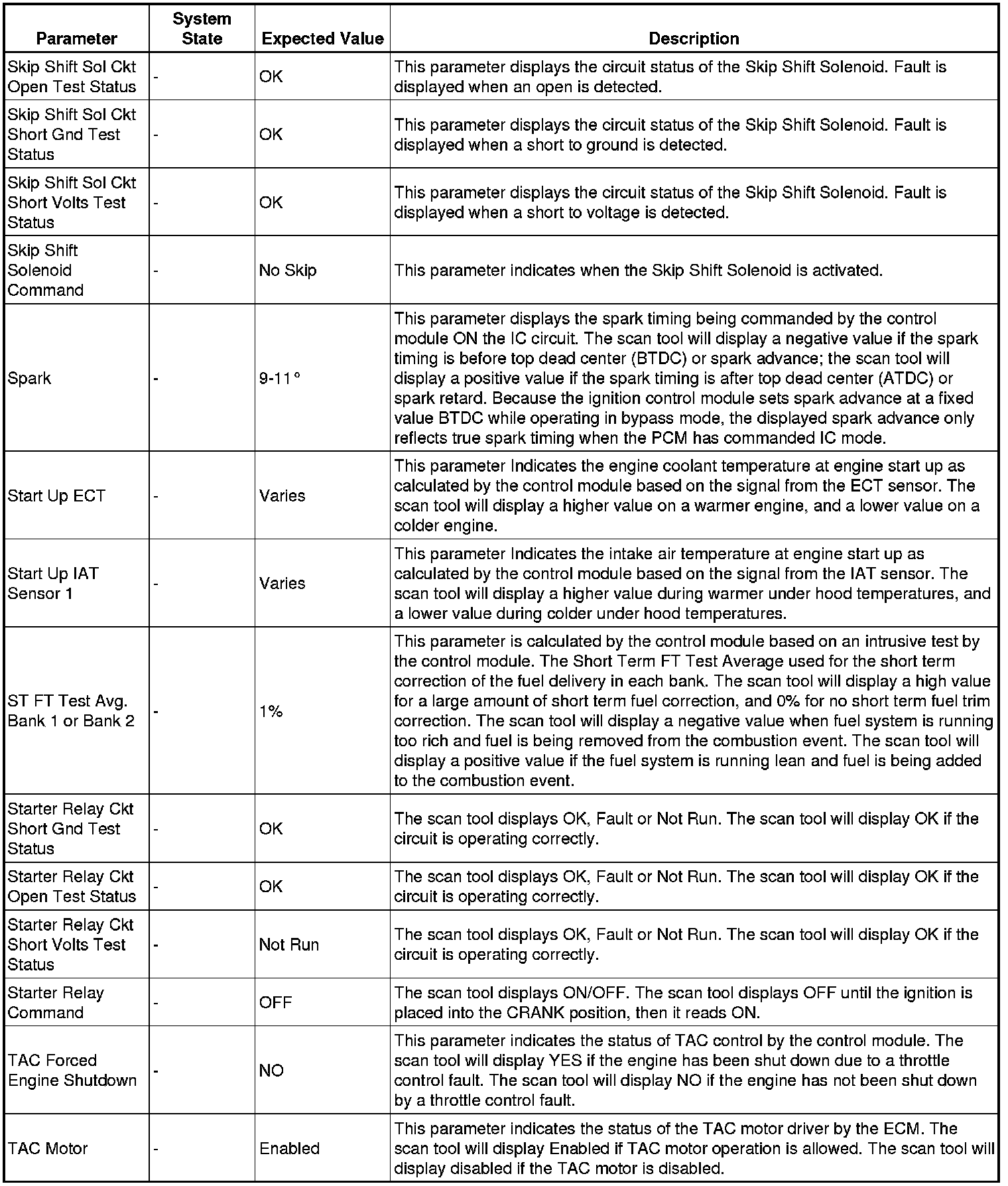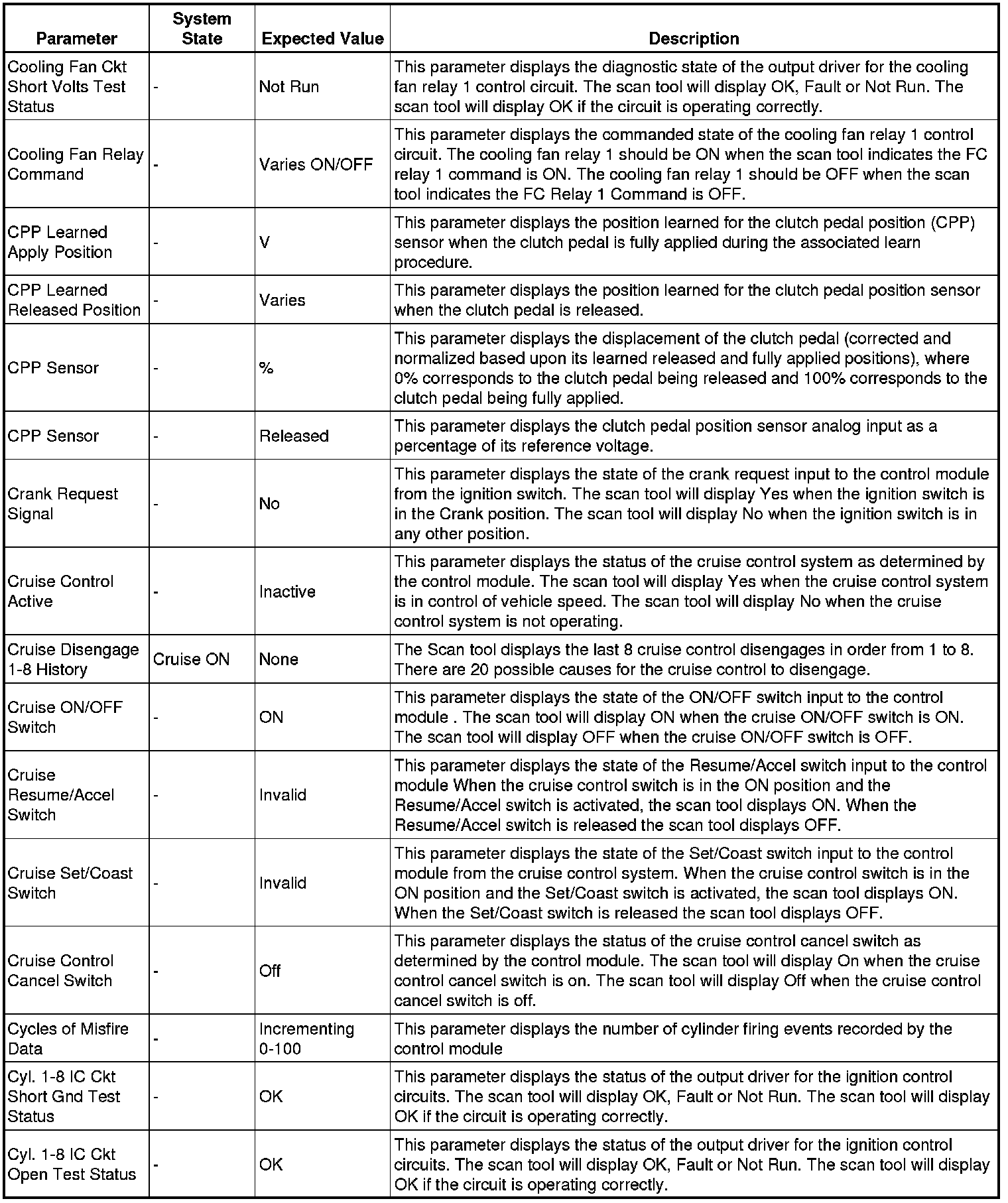 The Engine Control Module Scan Tool Data List contains all engine-related parameters that are available on the scan tool. The list is arranged in alphabetical order. A given parameter may appear in any one of the data lists, and in some cases may appear more than once, or in more than one data list in order to group certain related parameters together.