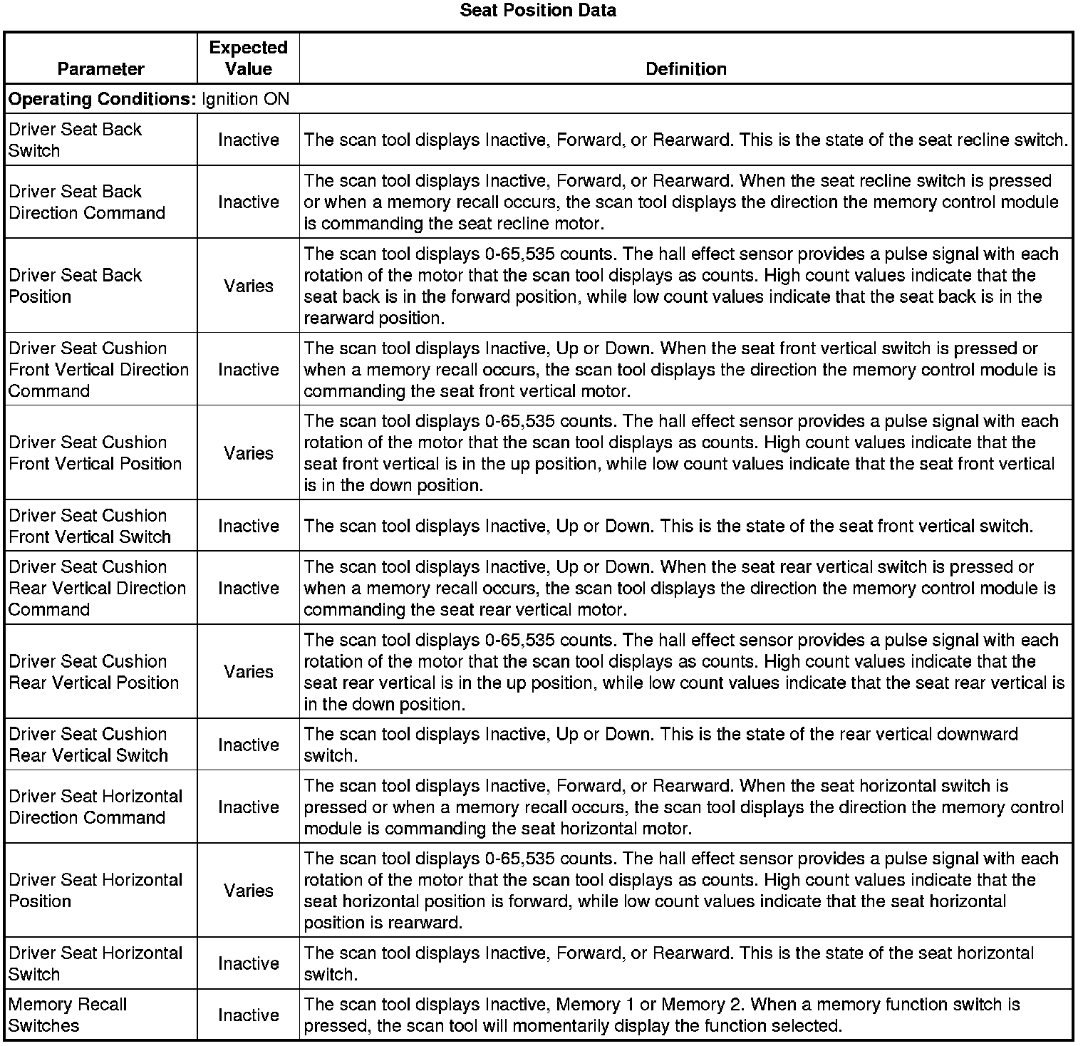 Driver Seat Adjuster Memory Module Scan Tool Information