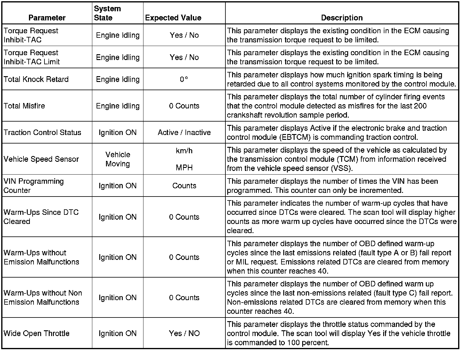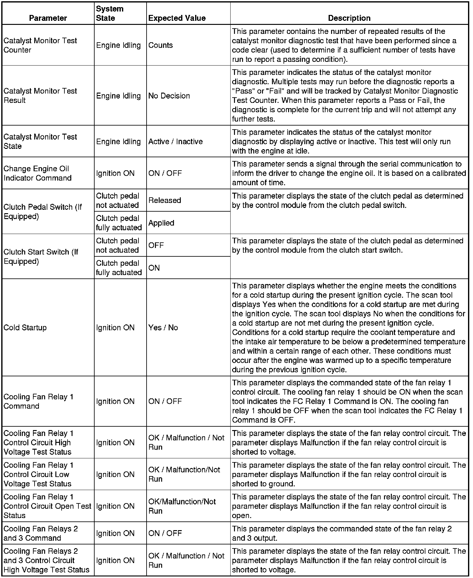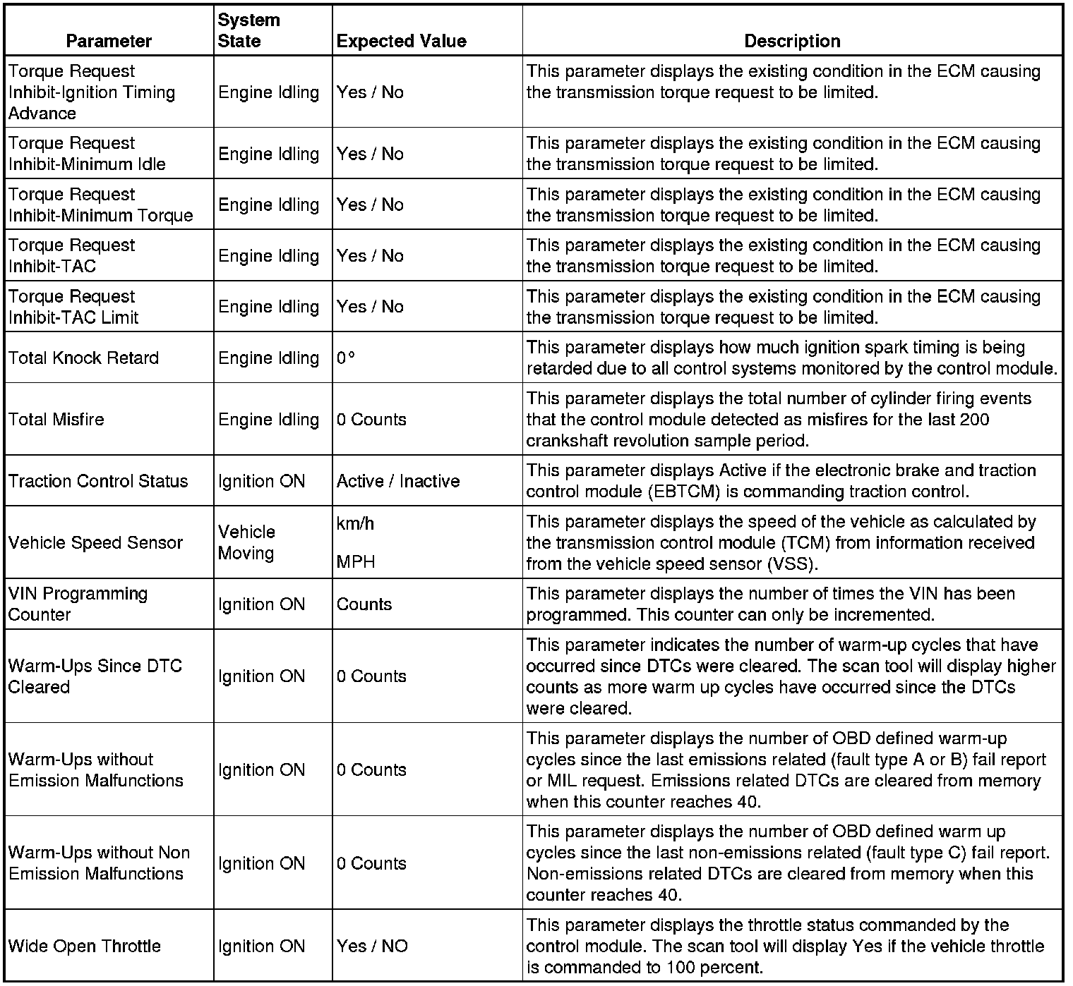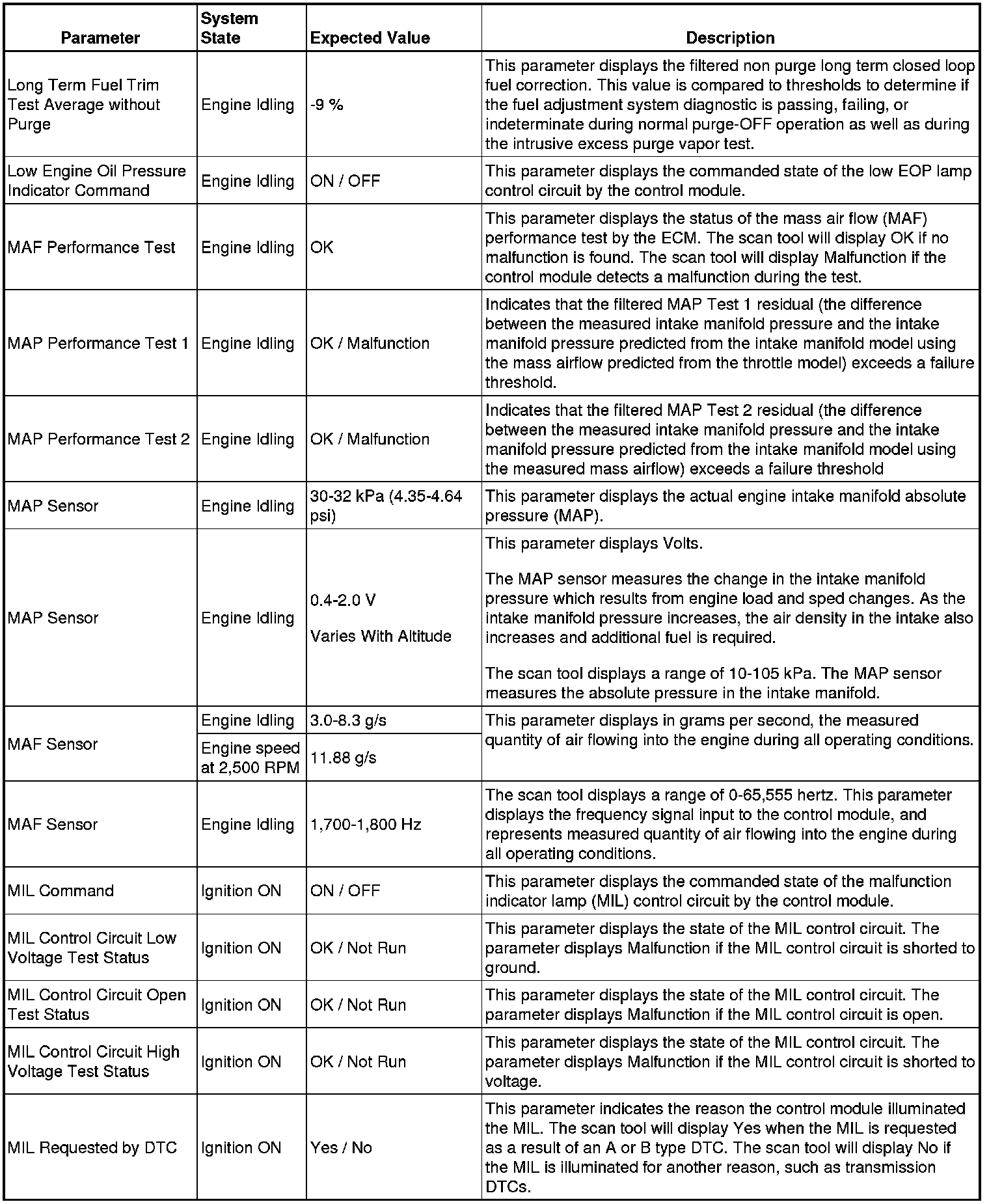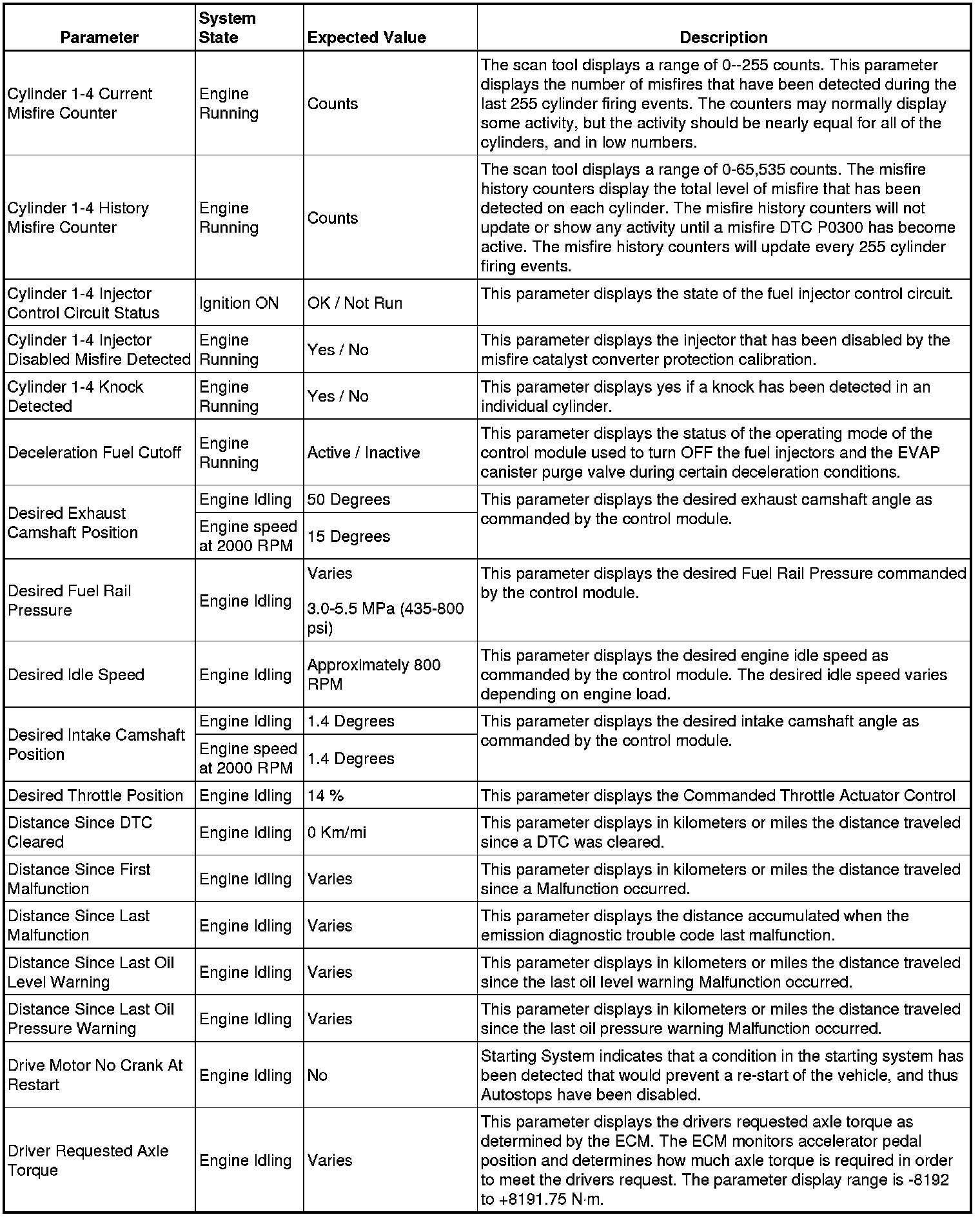 The Engine Control Module Scan Tool Data List contains all engine-related parameters that are available on the scan tool. The list is arranged in alphabetical order. A given parameter may appear in any one of the data lists, and in some cases may appear more than once, or in more than one data list in order to group certain related parameters together.