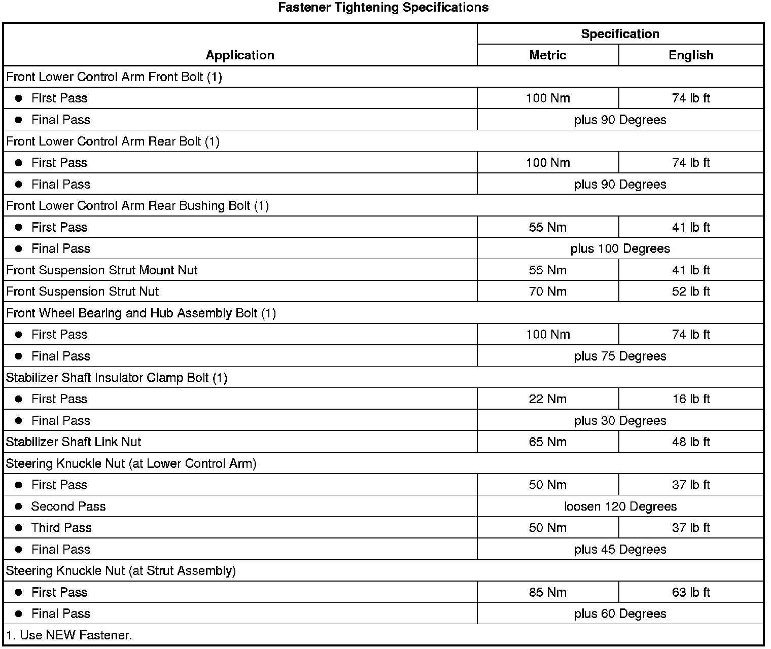 Fastener Tightening Specifications
