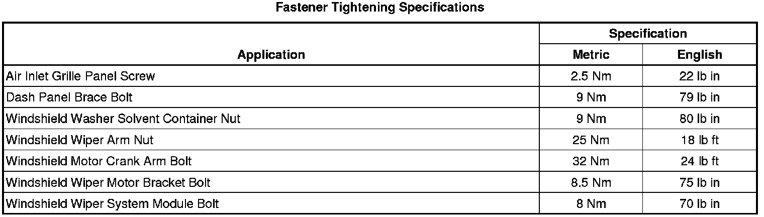 Fastener Tightening Specifications