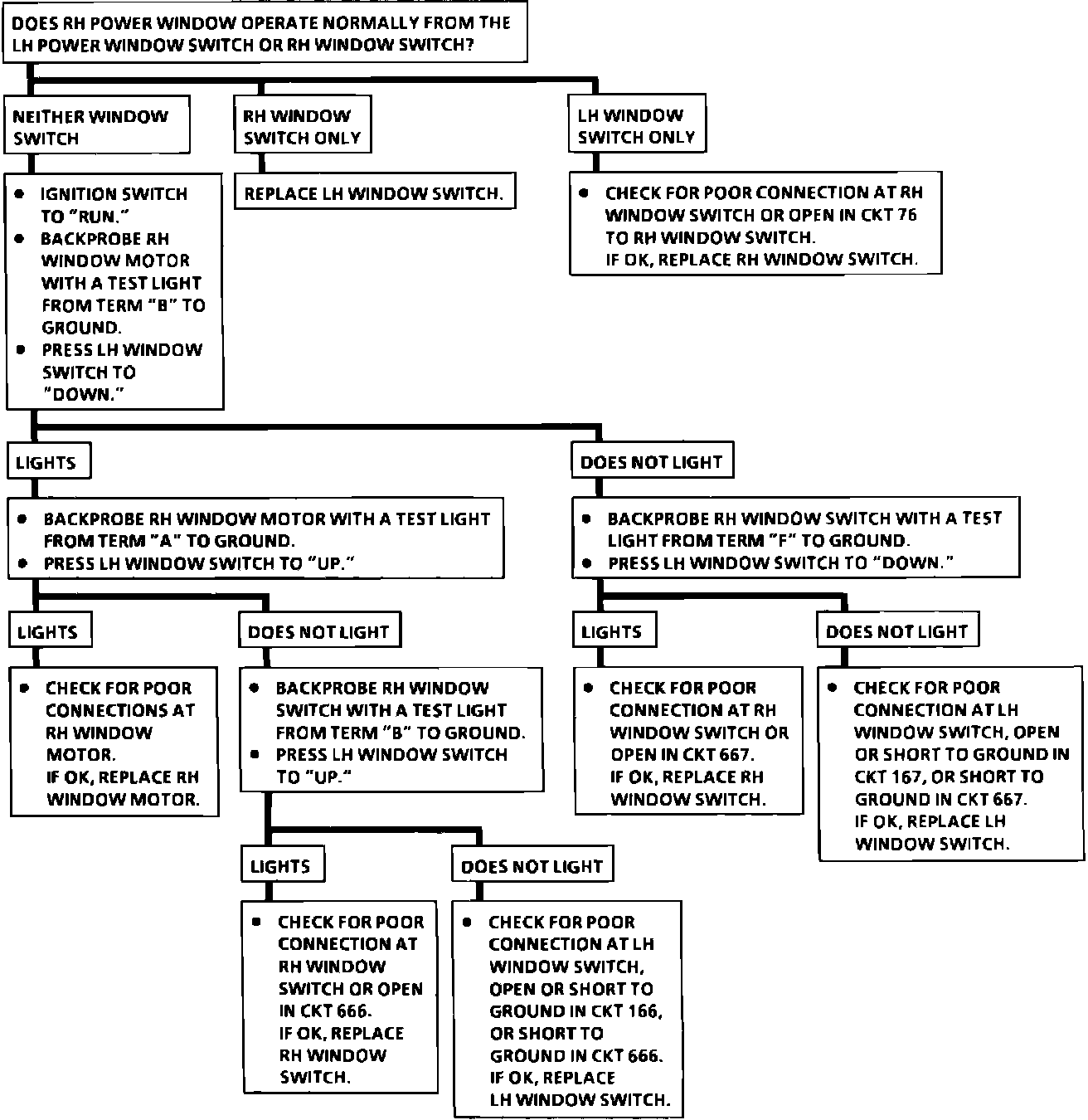 RH Power Window Inoperative, LH Power Window Operates Normally: