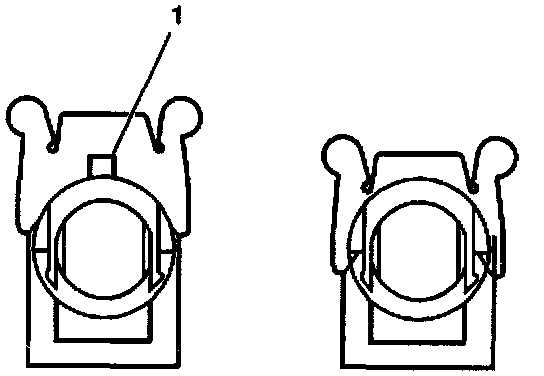 6. If a new cable is being installed, pull the cruise control cable ferrule (2) through the opposite end of the fitting (1). The ferrule (2) colour is natural and must be visible when pulled through the fitting (1).