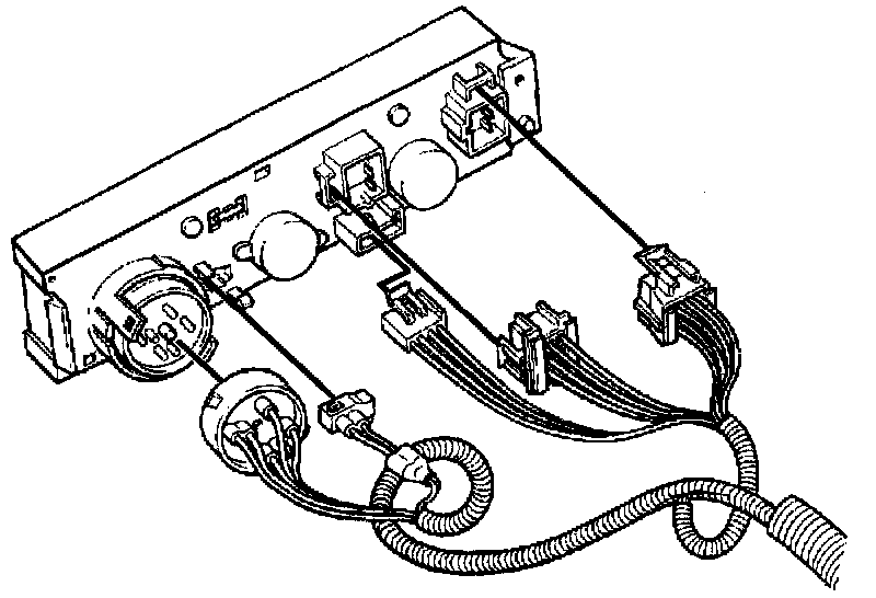 ^ Pull control assembly out of the instrument panel far enough to reach the vacuum and electrical connectors.