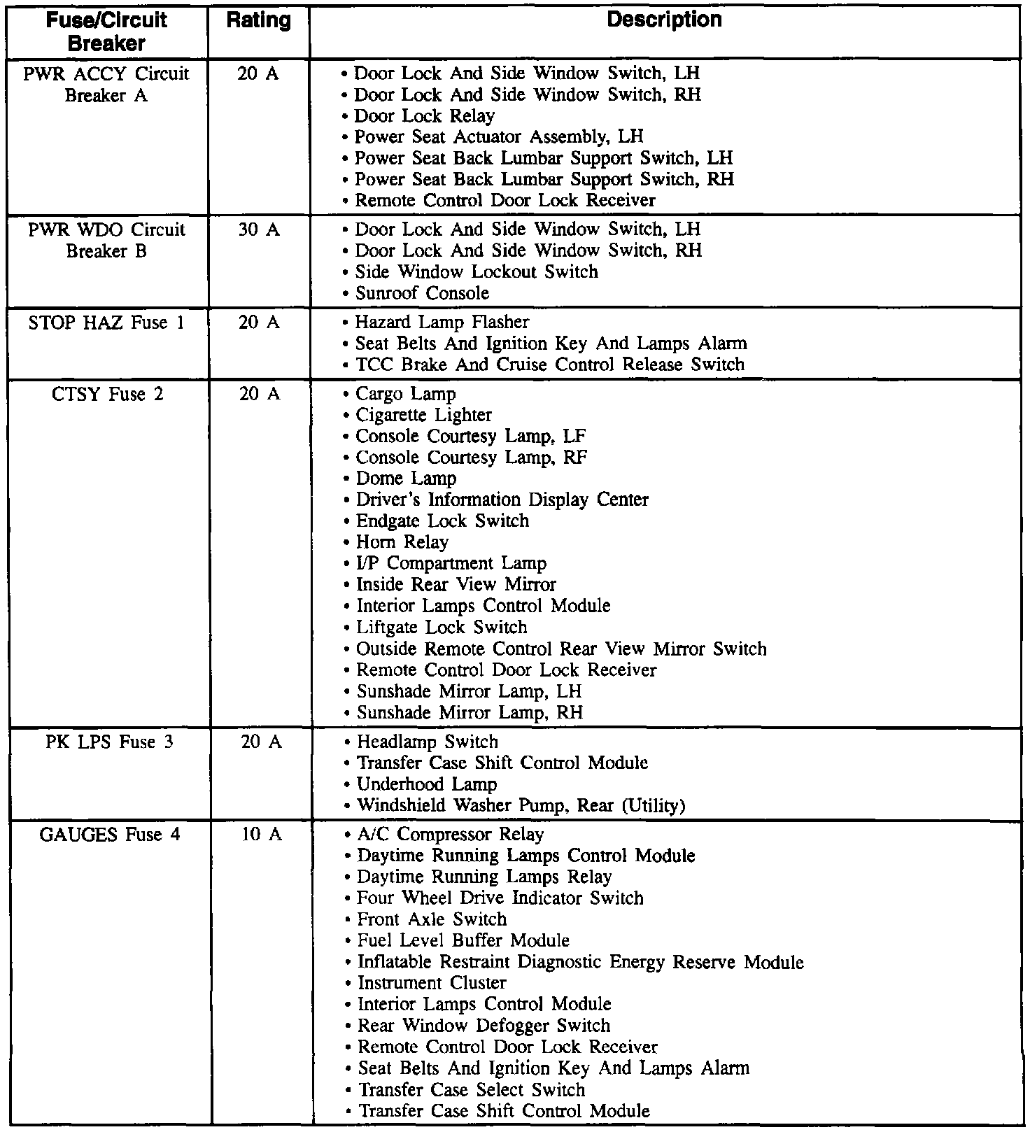 Fuse Application Table (Part 1 Of 3):