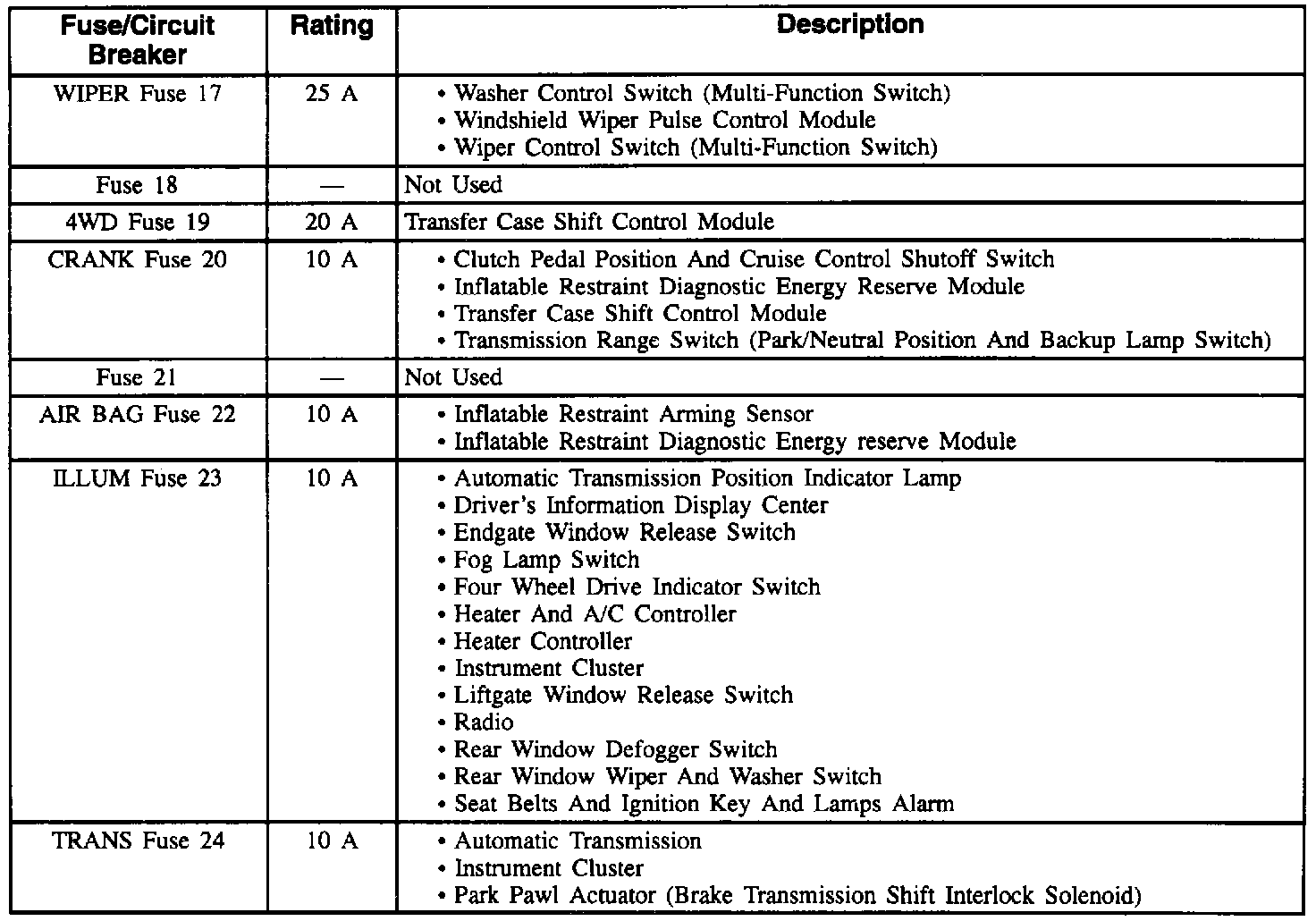 Fuse Application Table (Part 3 Of 3):