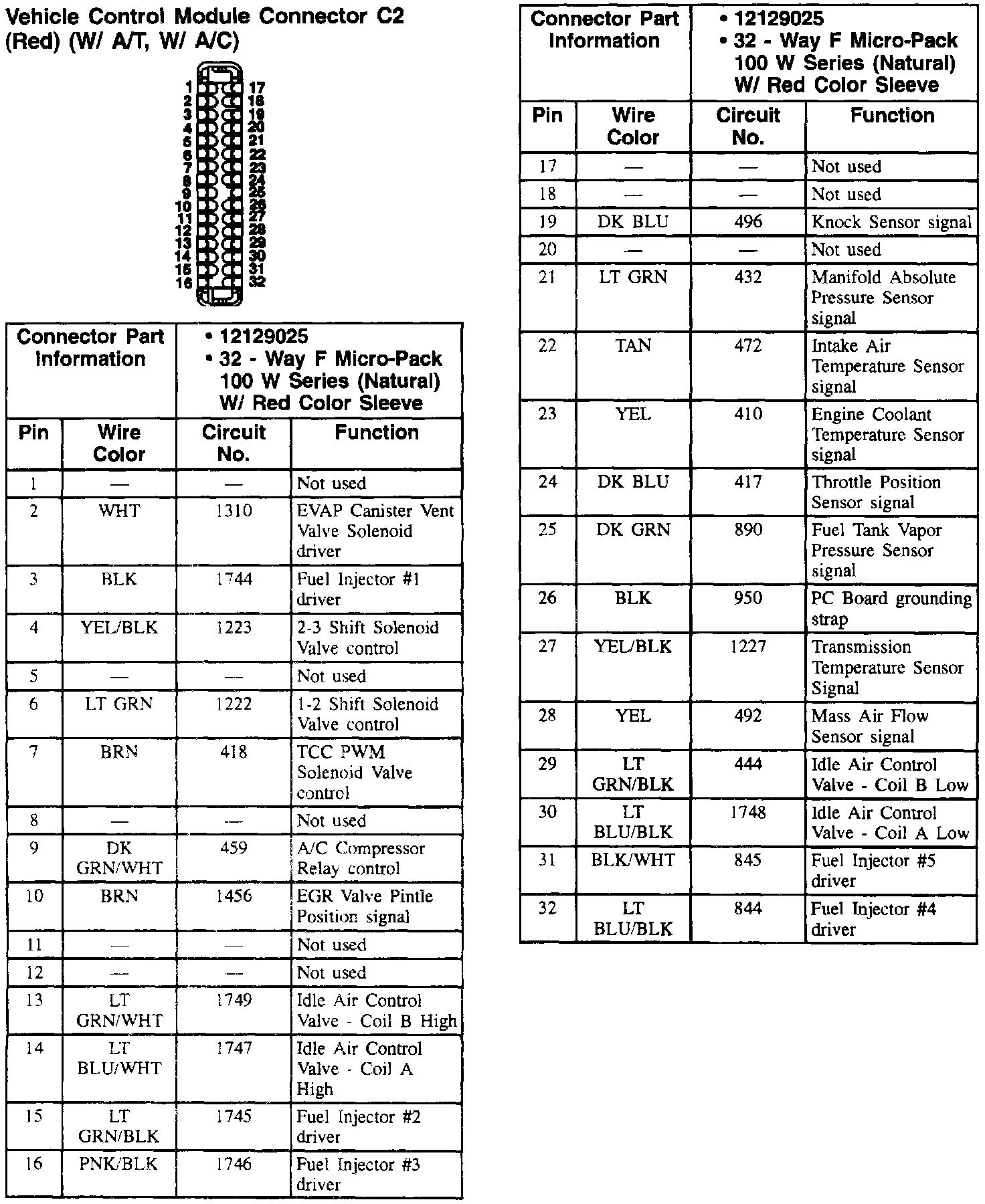 Vehicle Control Module Connector: C2 (W/ A/T, W/ A/C):