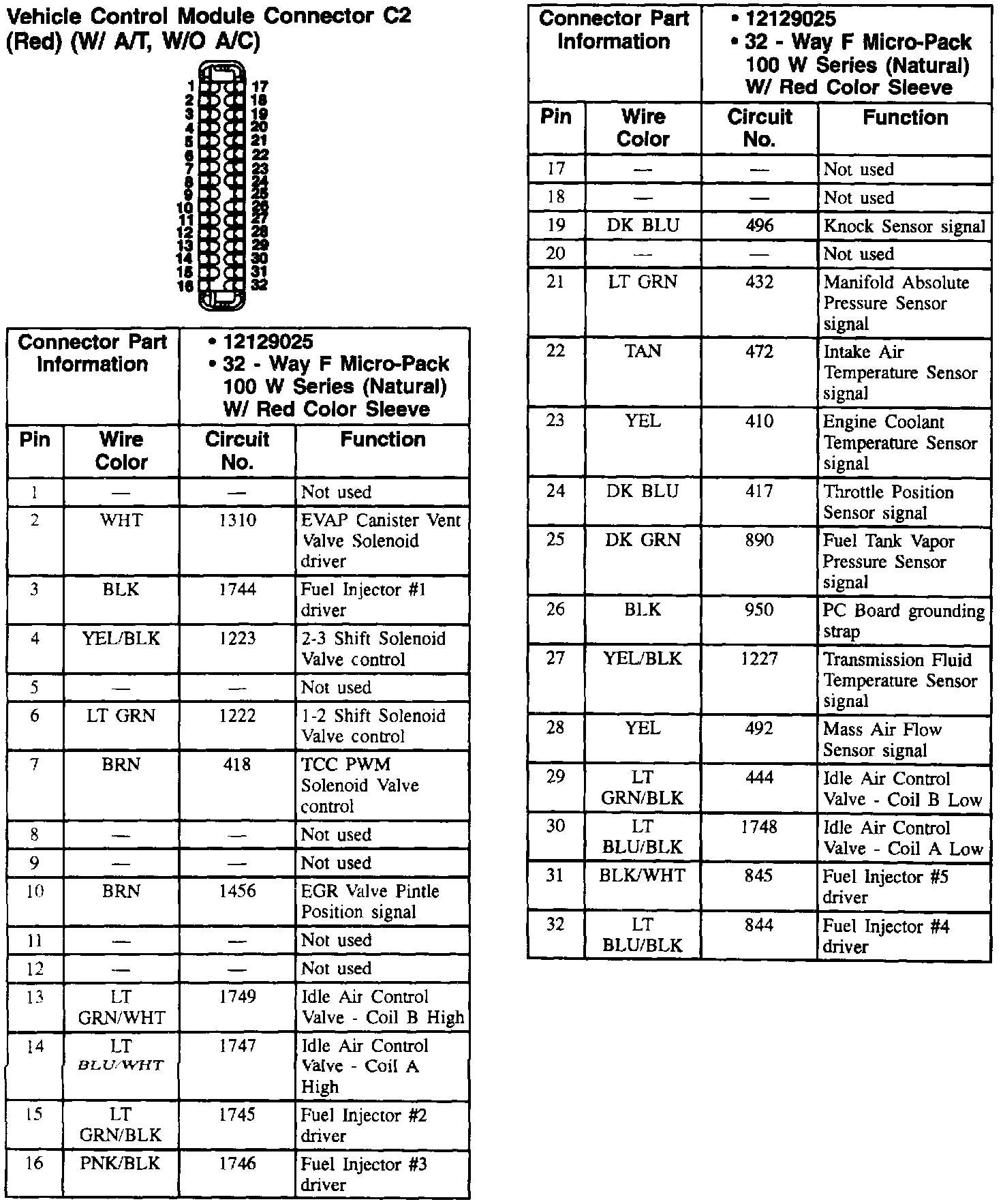 Vehicle Control Module Connector: C2 (W/ A/T, W/O A/C):
