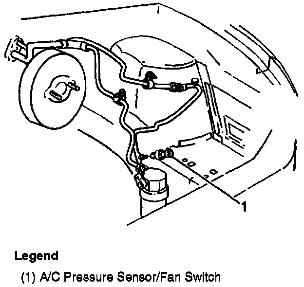 3. Electrical connector at A/C pressure sensor/fan switch.