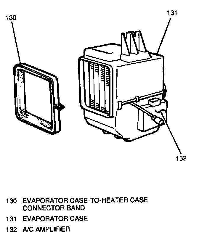 10. Evaporator case-to-heater case connector band; slide band on from heater case and tighten.