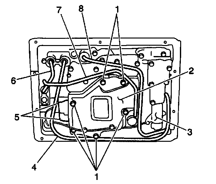 10. Remove the four fluid pipes in the following order: 7, 6, 4 and then 8.